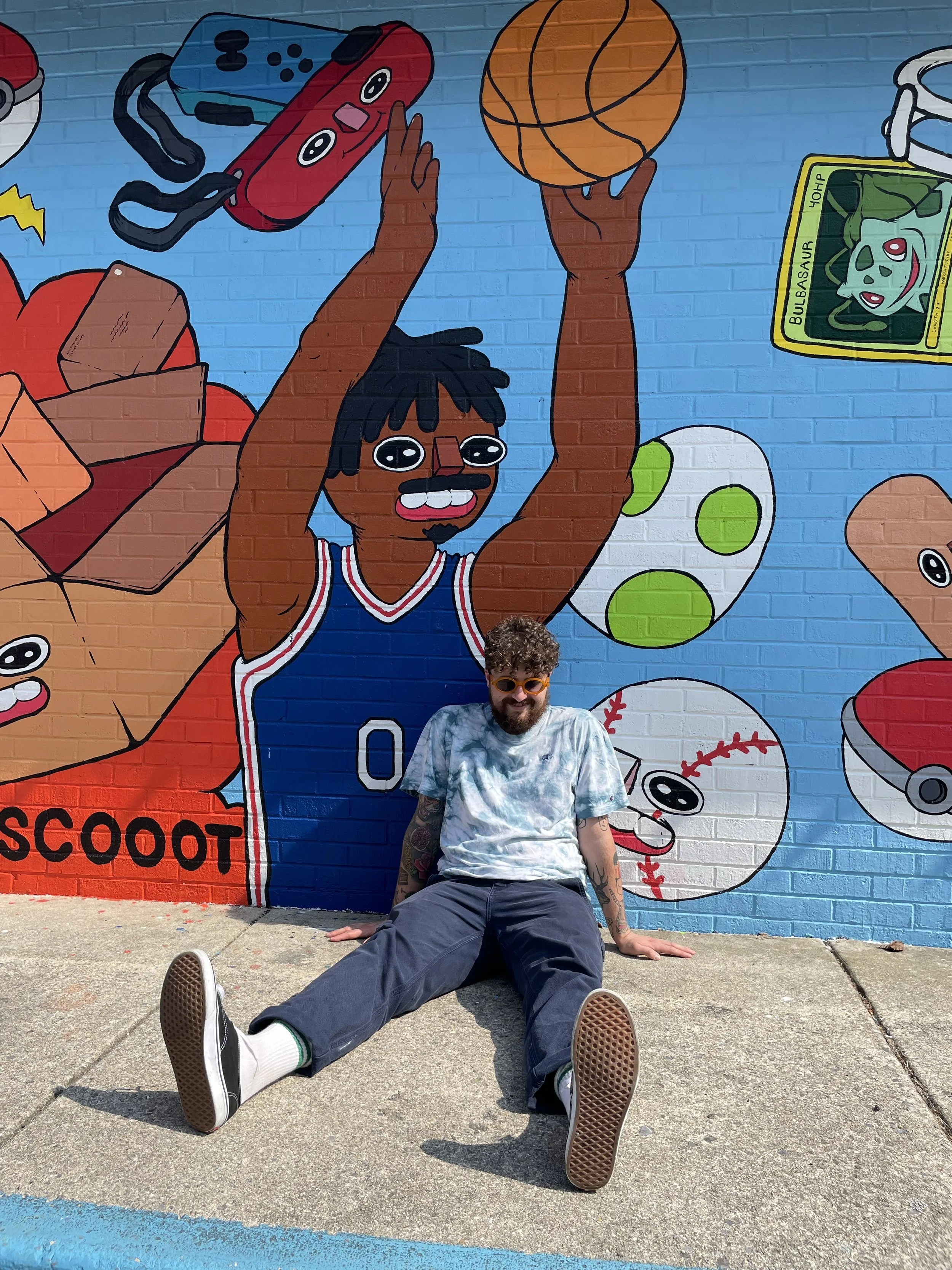 This mural was created for the owners of Action Video & Sports Card store. They wanted to embody everything they love and are about. Tons of bright colors and fun characters from various video games, sports teams and shows they love and work in. They wanted to draw more customers in and it was very succesful!