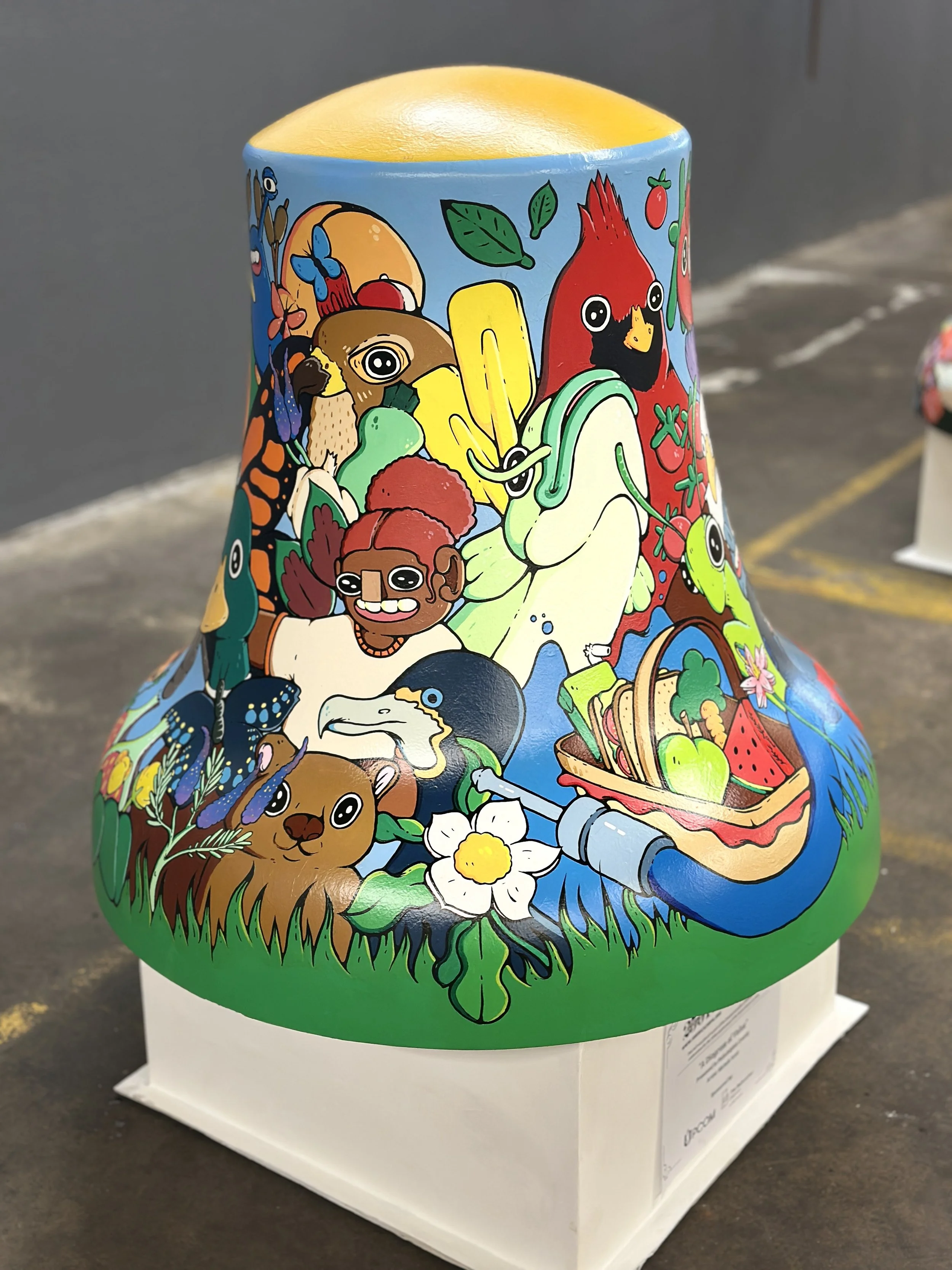 I was tasked with painting a bell to represent a neighborhood in Philadelphia. I was selected with 19 other artists to do this. To represent Bartram’s Garden I research and did public outreach and community work to find out what animals, plant life , activities, etc. would show the beauty of nature here in Philly and Bartram’s garden. The bell will be on display in Bartram’s Garden this spring.