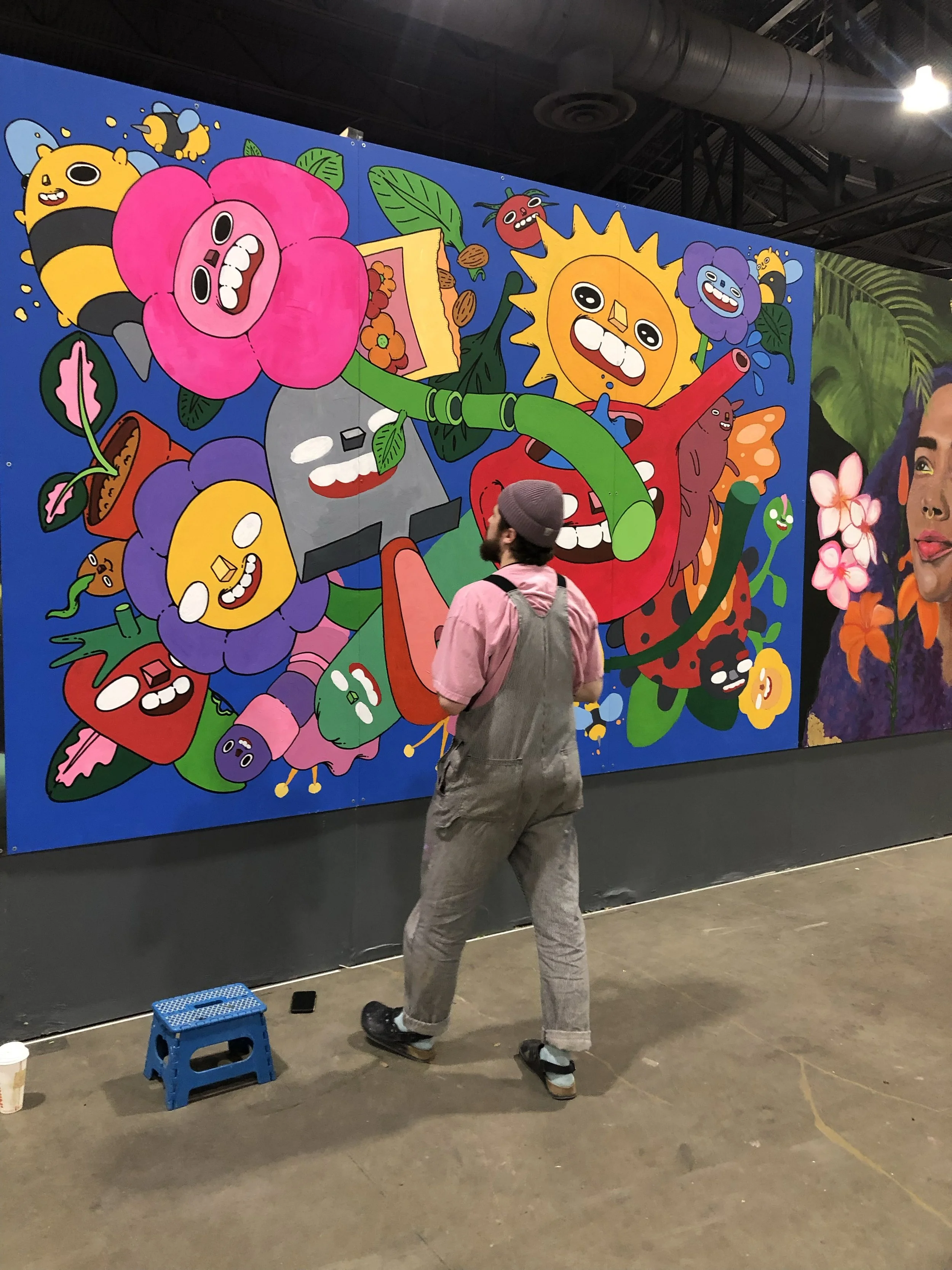 Mr. Pomodoro is a character I created for this mural. I was selected amongst several hundred applicants to do a large scale mural for Orlando’s annual mural festival. As there was no set theme or topics to follow I chose this character to represent me and my background. I’m an anxious little Italian tomato, so I draw and paint a lot of tomatoes. And perfect for a state that deals in agriculture.